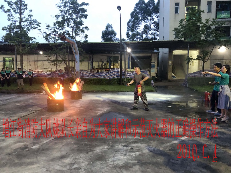 随后 ,增江街消防大队队长姚队亲自对干粉灭火器及消防水带的使用方法进行详细的讲解和实操示范,就消防安全基本知识对参与的员工进行普及。