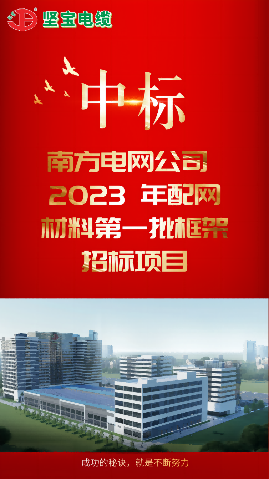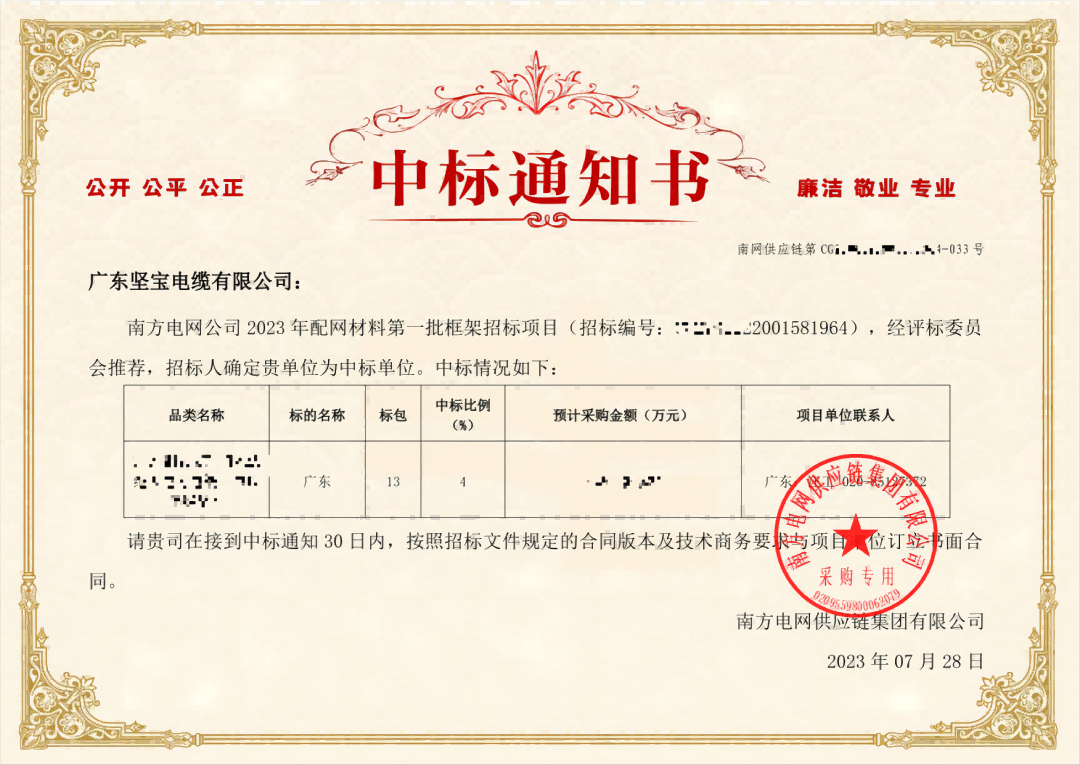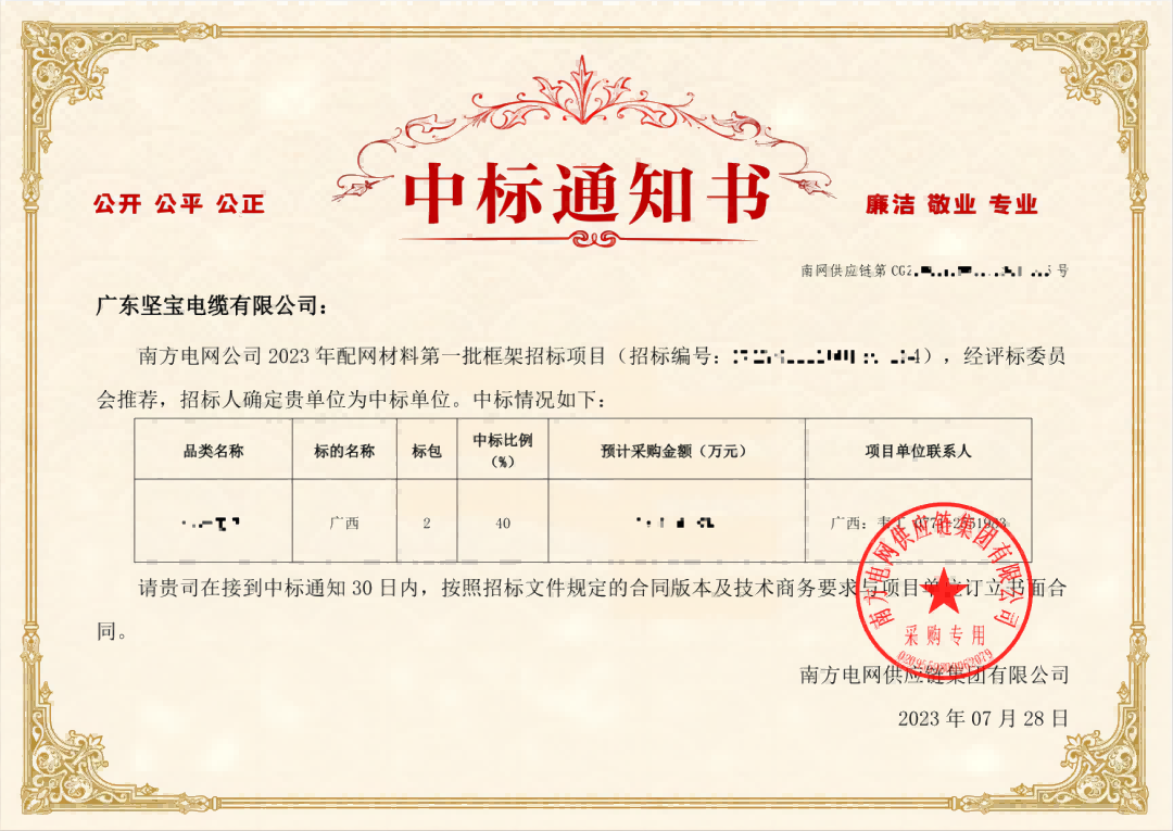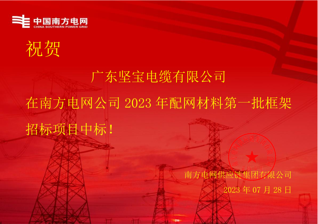 朝夕必争 全力以赴客户至上 使命必达近日91看片下载电缆再传捷报凭着过硬的实力获得客户肯定中标南方电网公司 2023 年配网材料第一批框架招标项目!